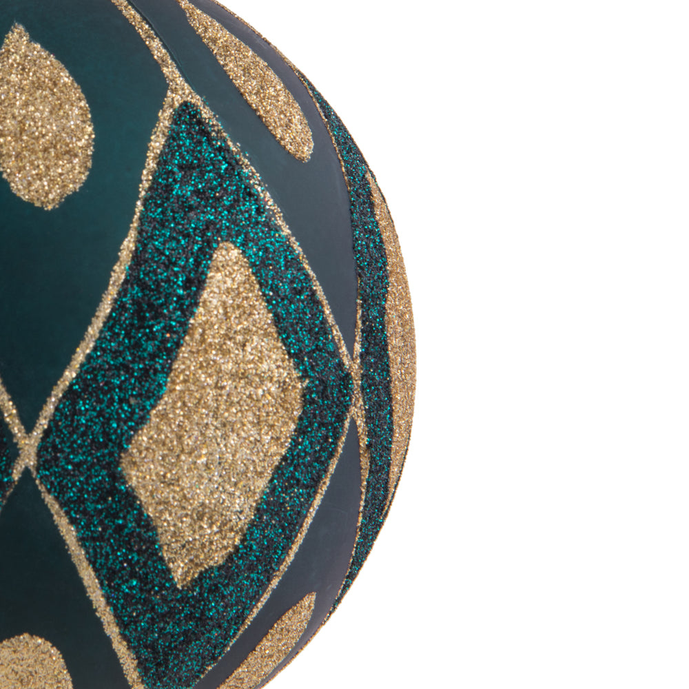 Vickerman 4.75" Sea Blue Matte Ball with Glitter Diamond Pattern. Add variety and sparkle to your holiday arrangement with this matte ornament that features a glitter pattern. Includes 4 pieces per bag. Made with shatterproof plastic. Ornament has a