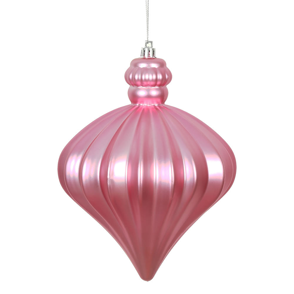 Vickerman 6" Pink Matte Onion Drop Ornament with drilled and wired caps. Comes 4 per Bag.