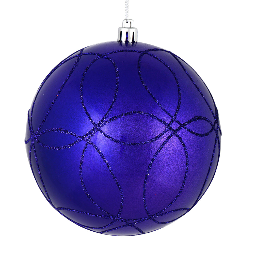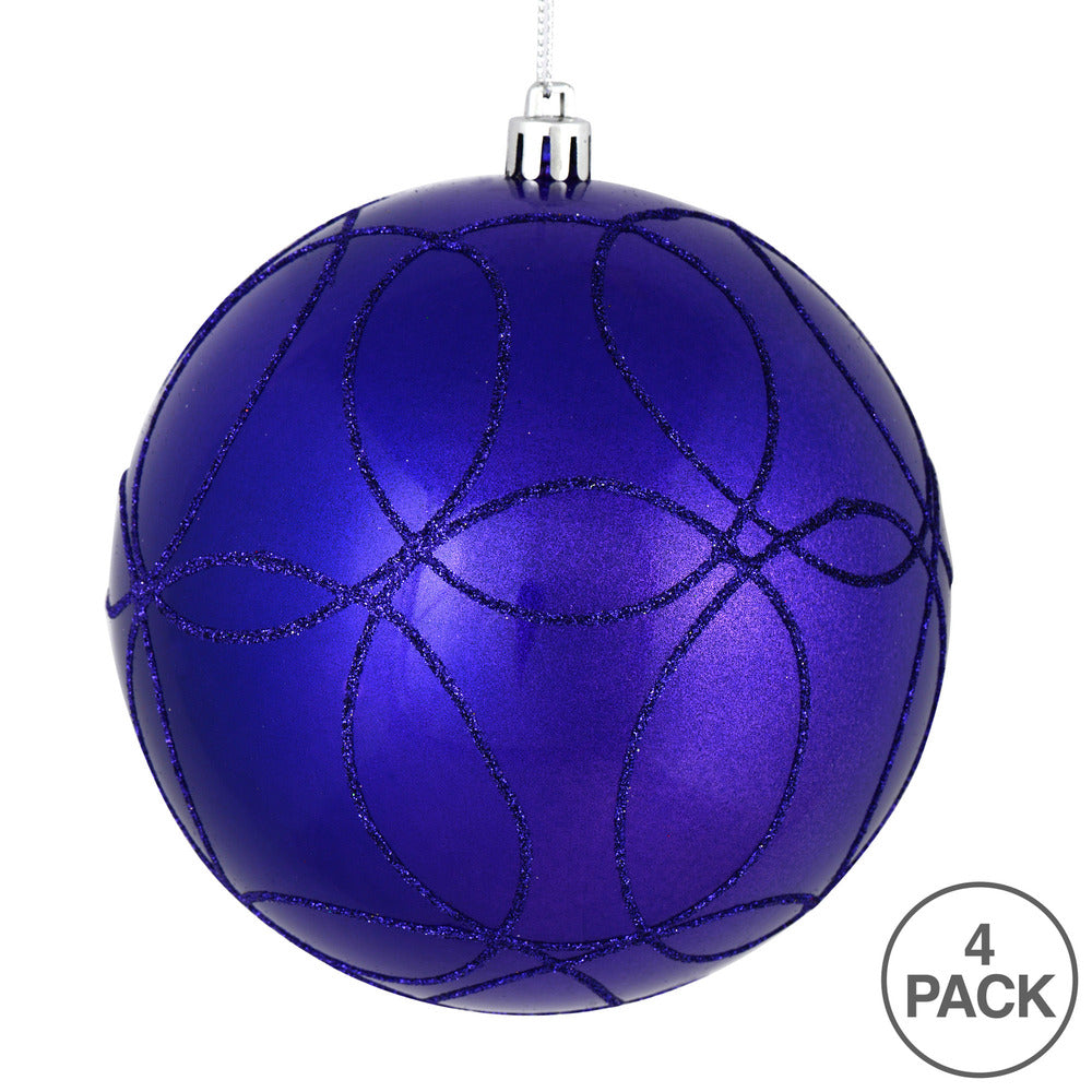 Vickerman 4" Purple Candy Finish Ornament with Circle Glitter Pattern 4 per Bag