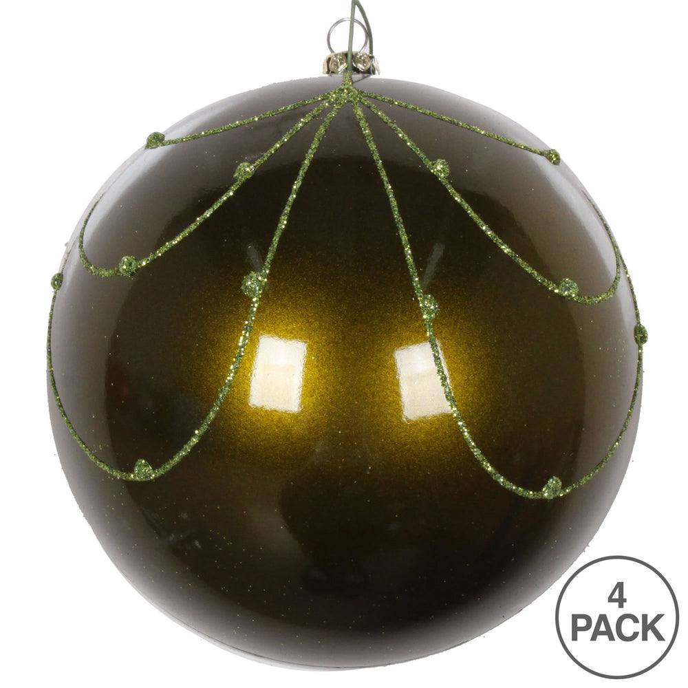 Vickerman 4.75" Olive Candy Finish Curtain Ornament with Glitter Accents 4 per Bag