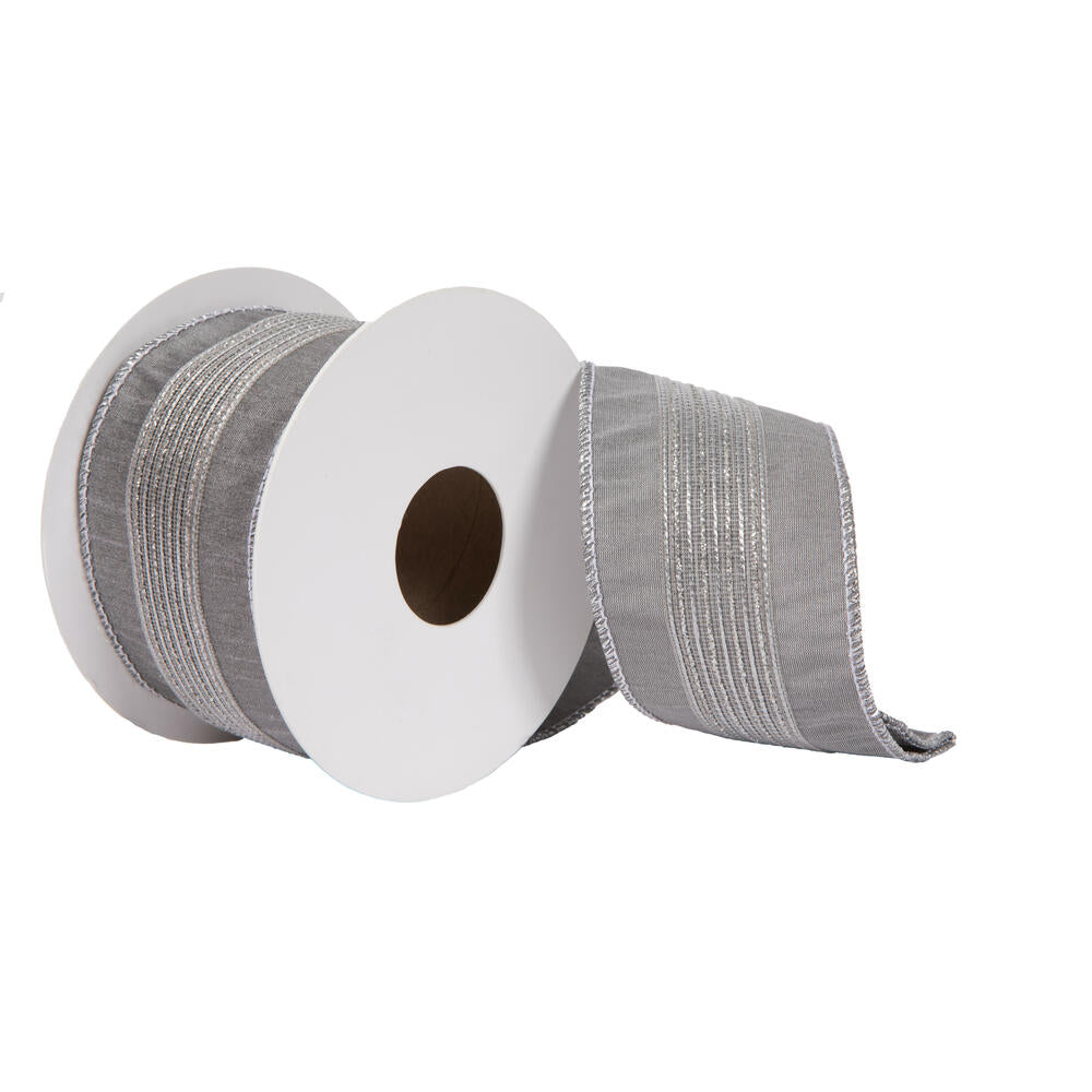Vickerman 2.5" x 5 Yards Gray Glitter Dori Trim Dupion Ribbon.