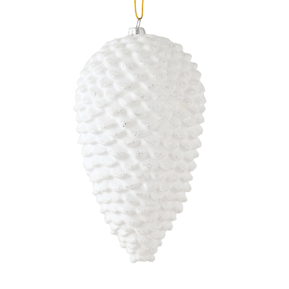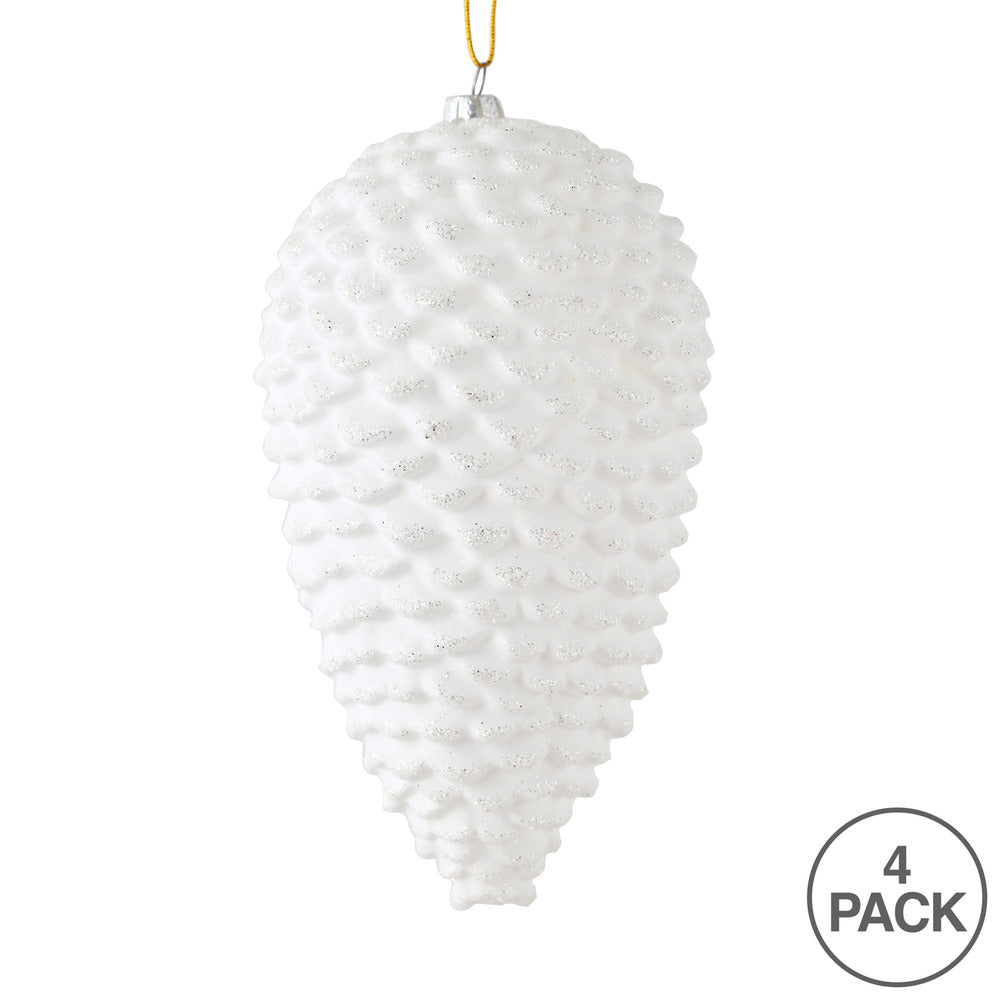 Vickerman 7" White Matte Glitter Pinecone Christmas Ornament 4 per pack