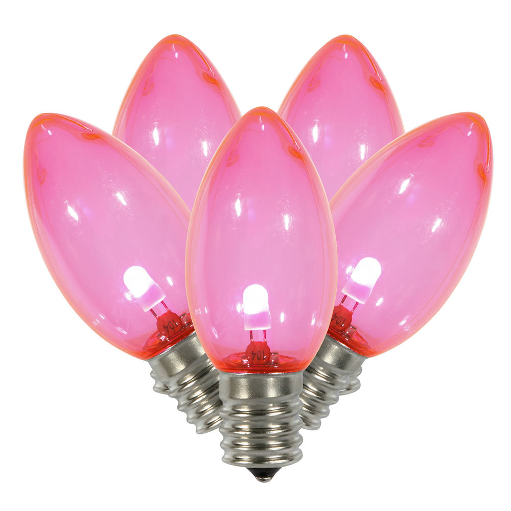 Vickerman C9 Transparent Plastic LED Pink Dimmable Bulb E17 Nickel Base 25 per bag