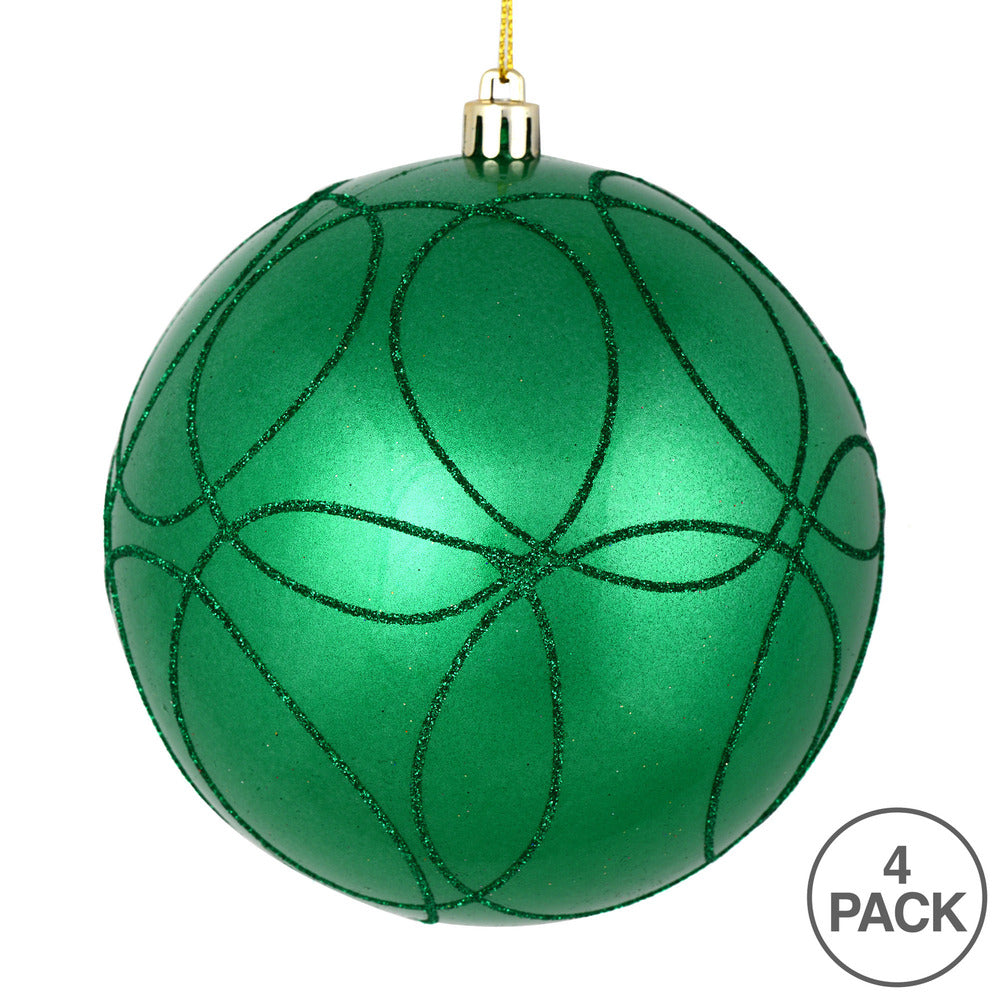 Vickerman 4" Seafoam Green Candy Finish Ornament with Circle Glitter Pattern 4 per Bag