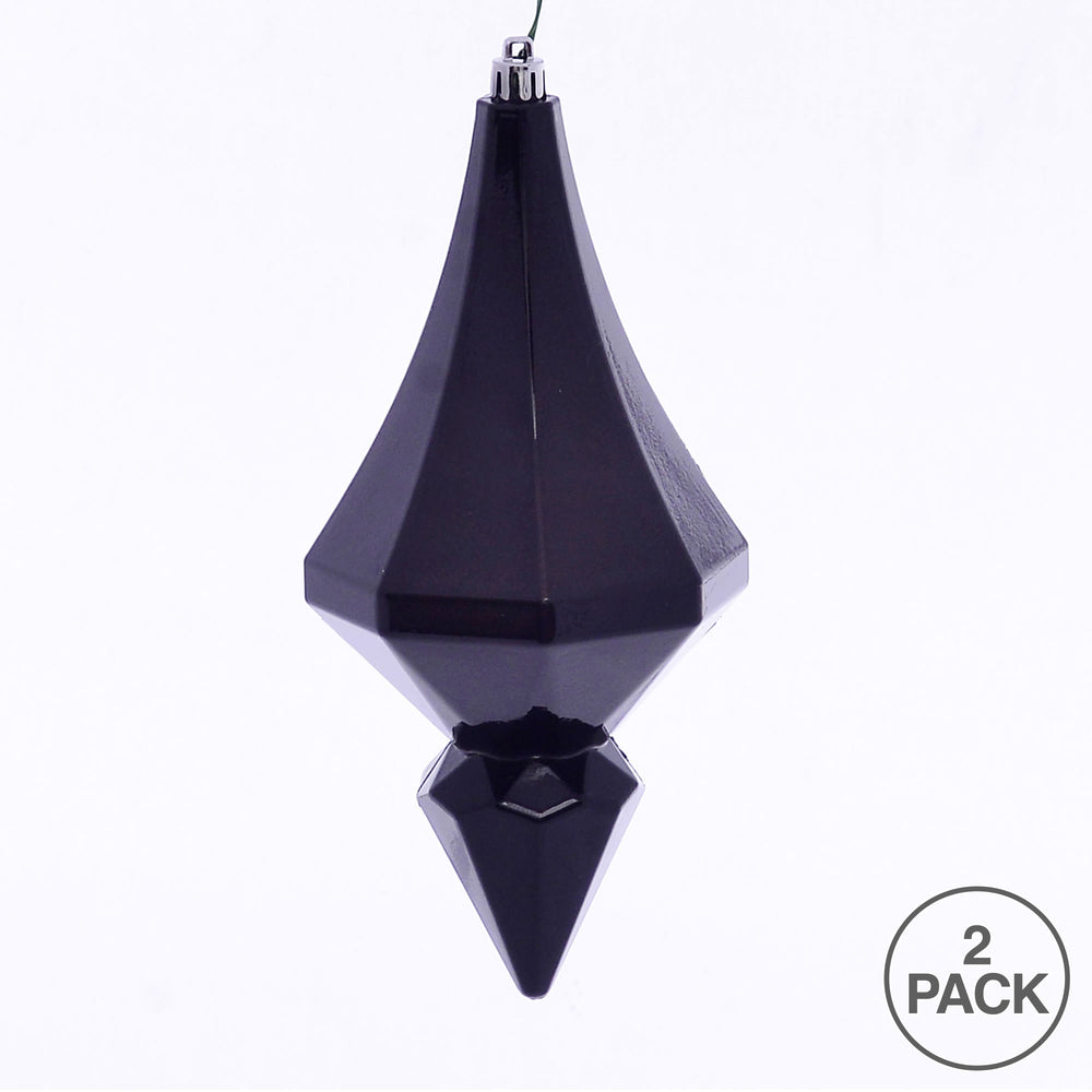 Vickerman 8" Black Candy Finish Diamond Finial Ornament Pack of 2