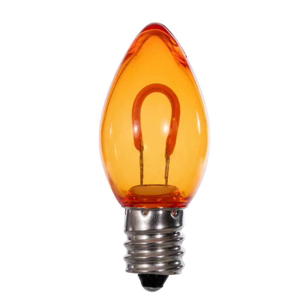 Vickerman C7 Transparent U-Shaped Filament Amber Bulb, E12 Base, .6 Watts, 25 Pcs Assorted/Bag. Colors included are Blue, Red, Green, Purple and Amber.
