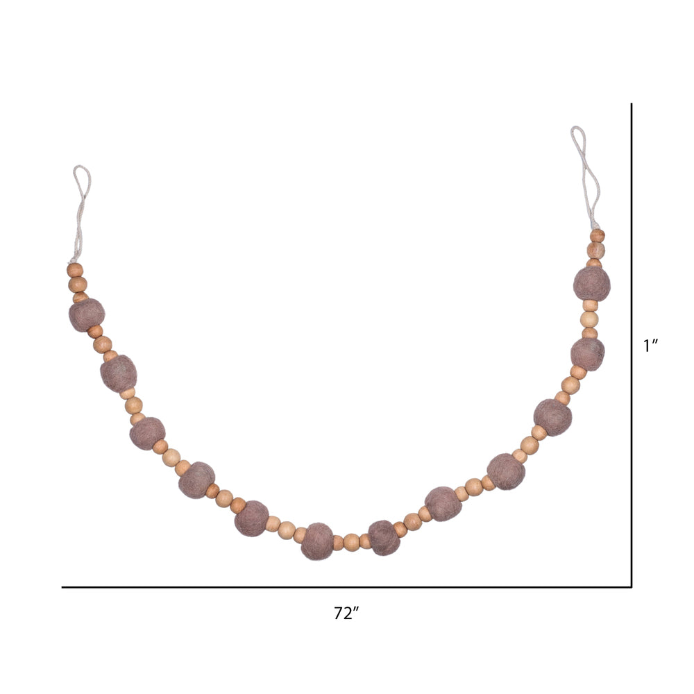 Vickerman 72" Mocha Wood/Felt Pom Pom Garland 72 inches in length.