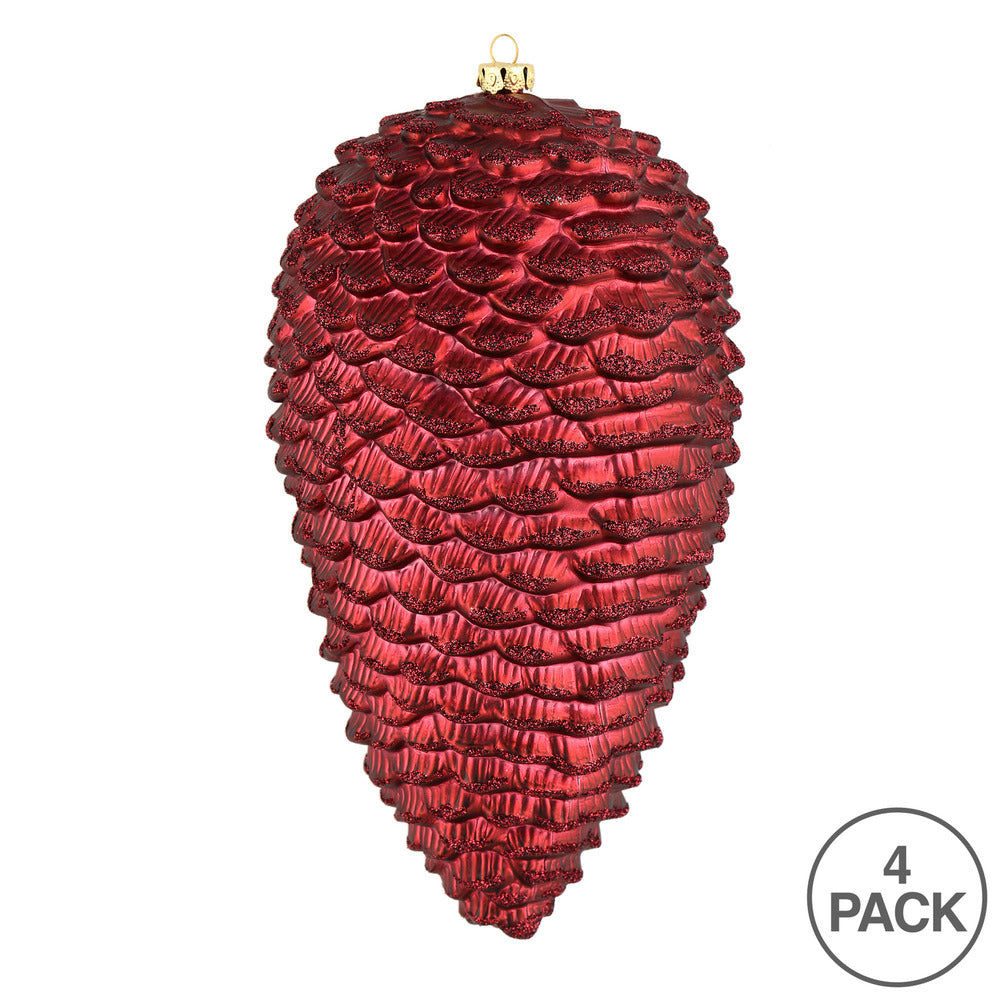 Vickerman 7" Wine Matte Glitter Pinecone Christmas Ornament 4 per pack