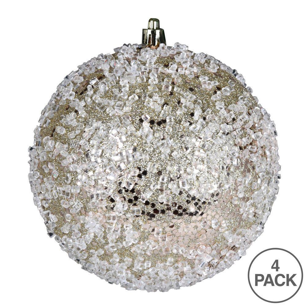 Vickerman 6" Champagne Glitter Hail Ball Ornament 4 per Bag