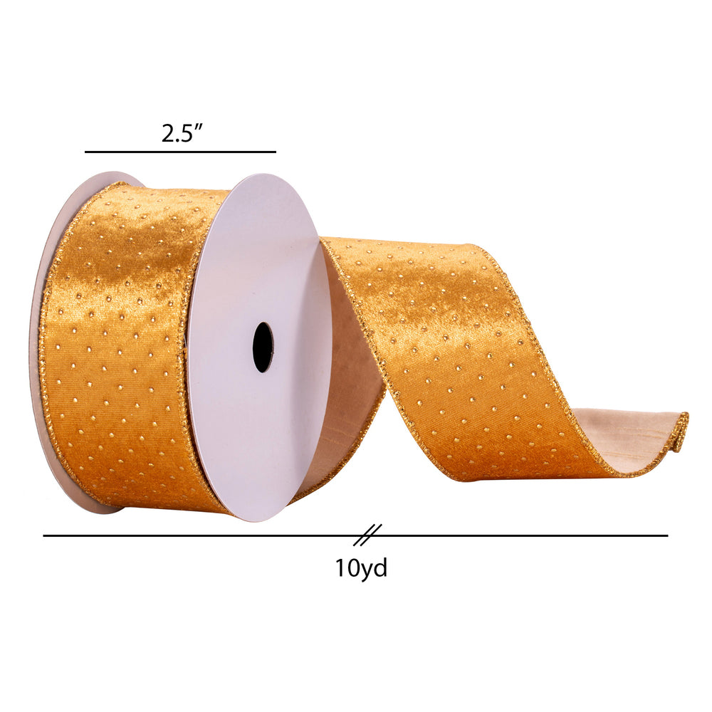 Vickerman 2.5" x 10 Yards Gold with Gold dots Ribbon