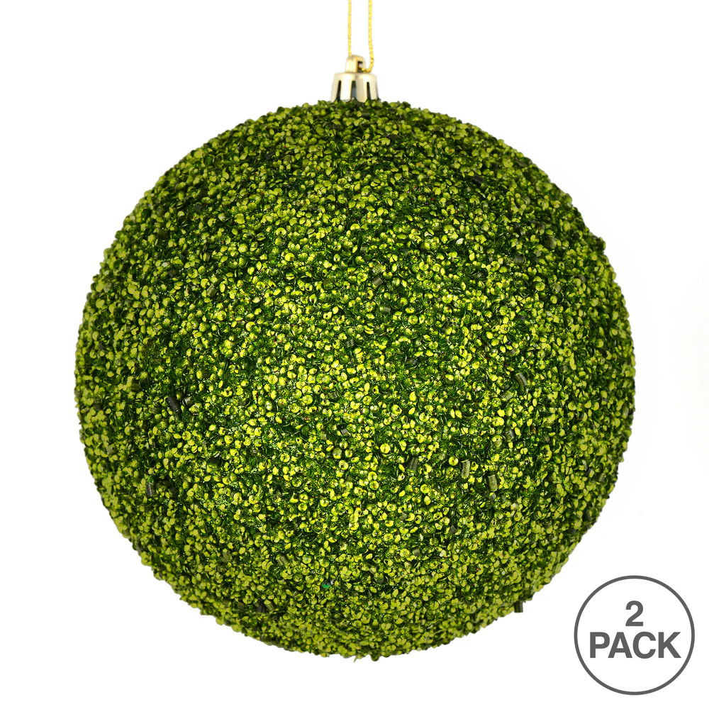 Vickerman 8" Lime Beaded Ball Ornament 2 per Bag