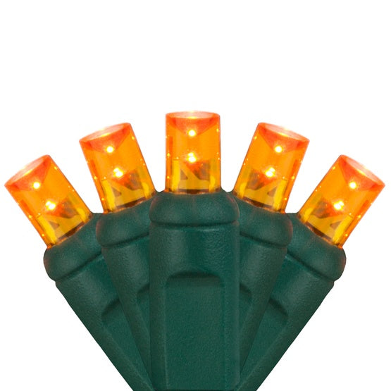 50 Light LED Conical (5MM) Light Set Orange Bulbs on Green Wire, Approx. 17'4" Long