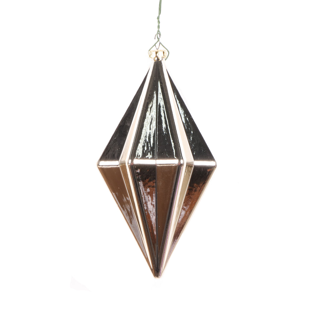 Vickerman 12" Rose Gold Candy Glitter Drop Ornament. This ornament is the perfect addition to any holiday decorating project. Each ornament features a drilled cap with threaded wire for easy decorating.