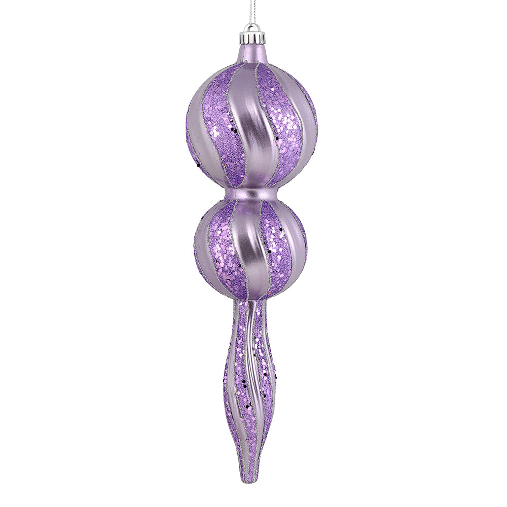 Vickerman 16.5" Lavender Candy Glitter Finial. Create a beautiful holiday arrangement with this large Candy finial that features glitter accents. Made with shatterproof plastic. Ornament has a drilled cap secured with green floral wire.