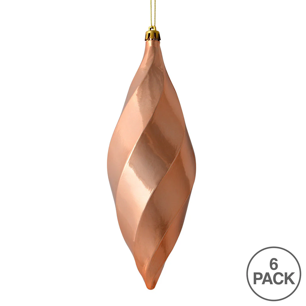 Vickerman 8" Rose Gold Shiny Swirl Finial Ornament Pack of 6
