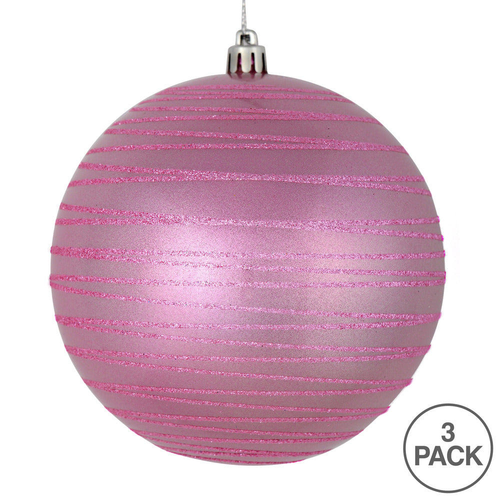 Vickerman 6" Pink Candy Finish Ball Ornament with Glitter Lines 3 per Bag