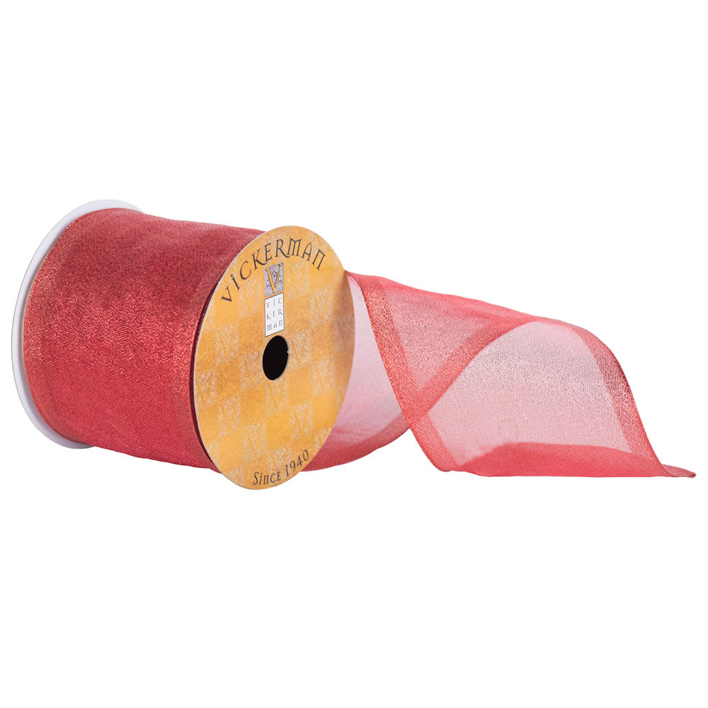 Vickerman 4" x 10 Yards Red Shiny Wired Edge Christmas Ribbon
