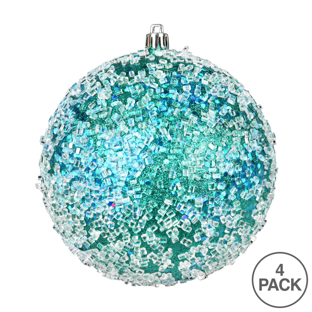 Vickerman 6" Teal Glitter Hail Ball Ornament 4 per Bag