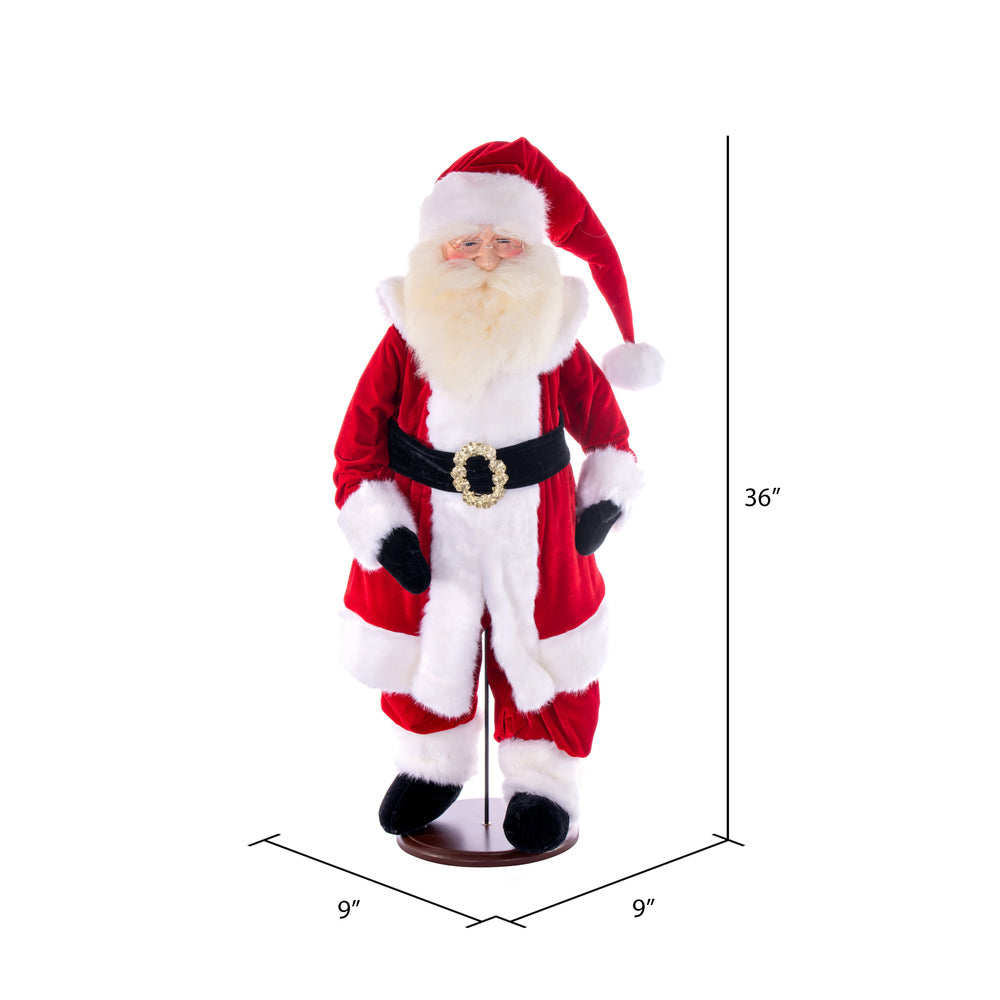 Vickerman 36" Red Traditional Velvet Light Complexion Santa Doll with Stand. This Santa has glasses stand is removeable.