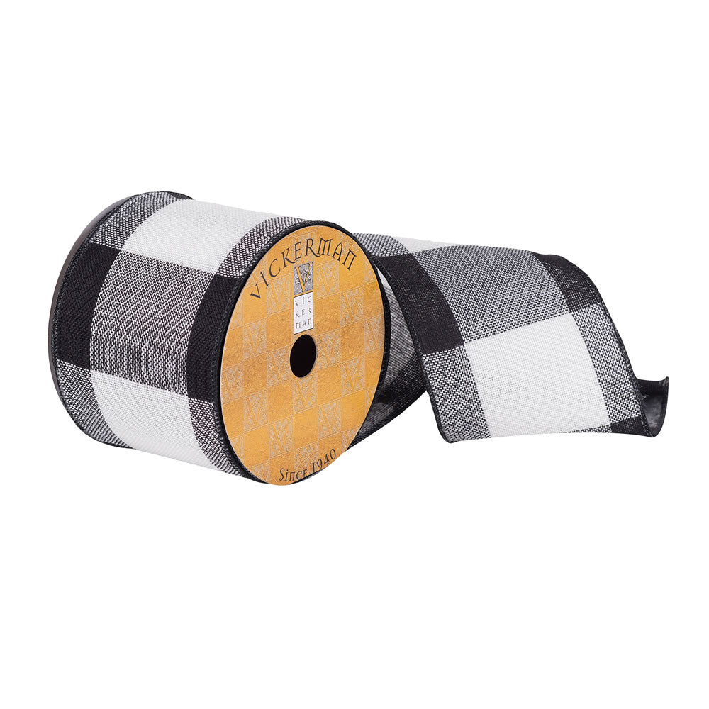 Vickerman 4" x 10 Yards Black and White Soft Plaid Christmas Ribbon