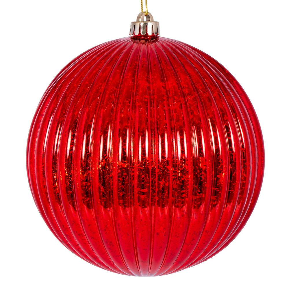 Vickerman 6" Red Shiny Lined Mercury Ball Ornament 4 per bag.