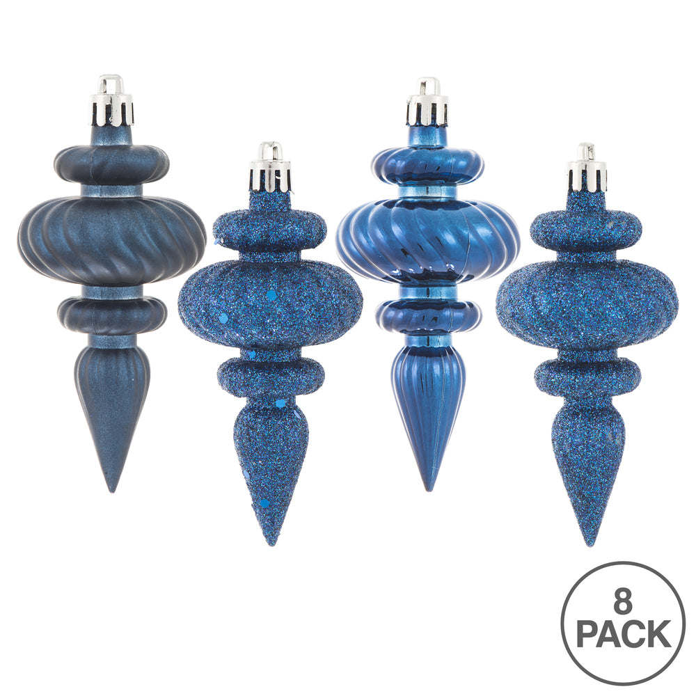 Vickerman 4" Midnight Blue 4-Finish Finial Ornament 8 per Box