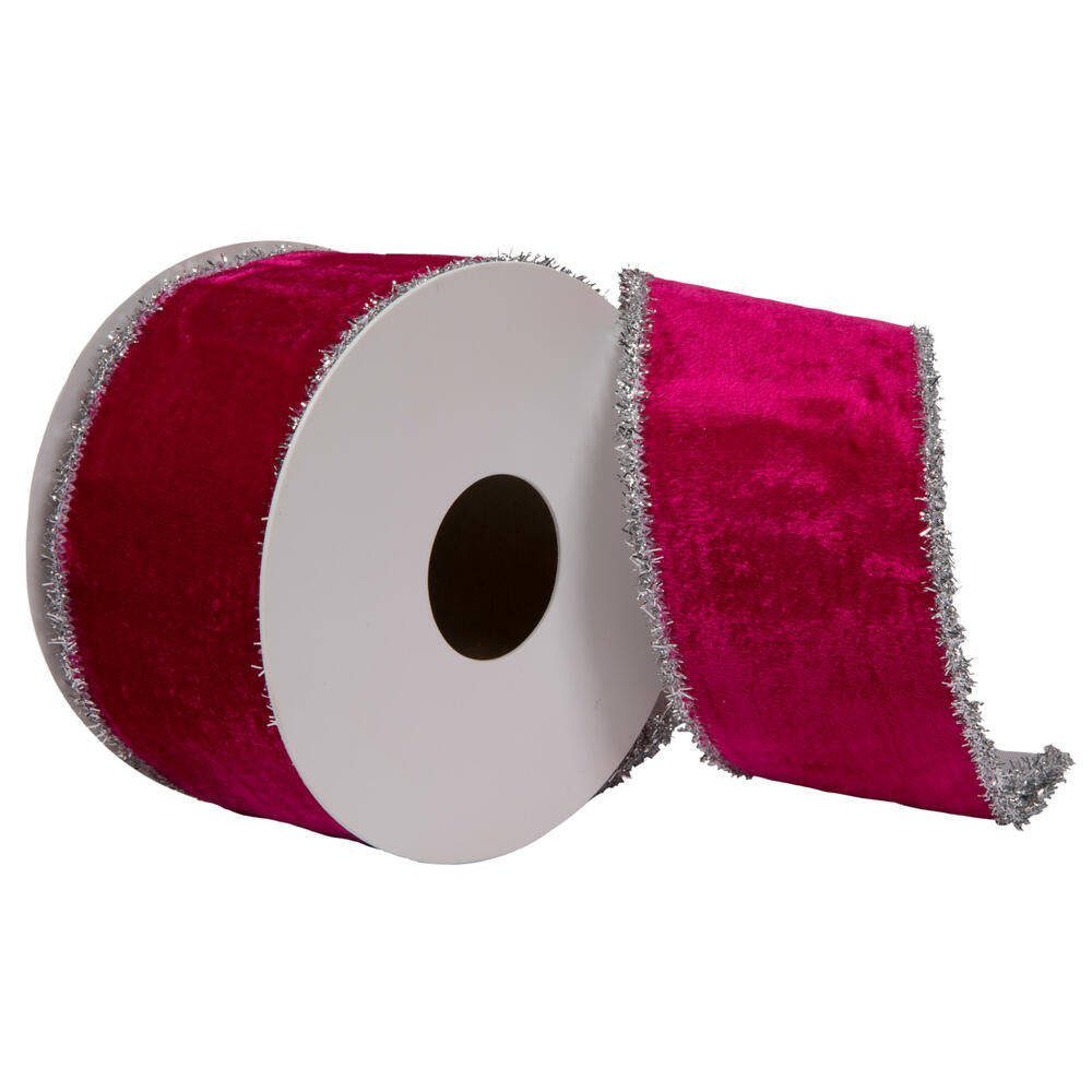 Vickerman 2.5" x 5 Yards Fushia/Silver Viscose Velvet Double Fused Ribbon.