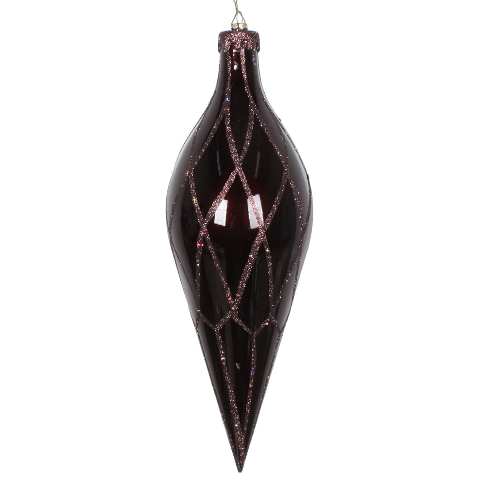 Vickerman 12" Plum Candy Glitter Spiral Teardrop Christmas Ornament