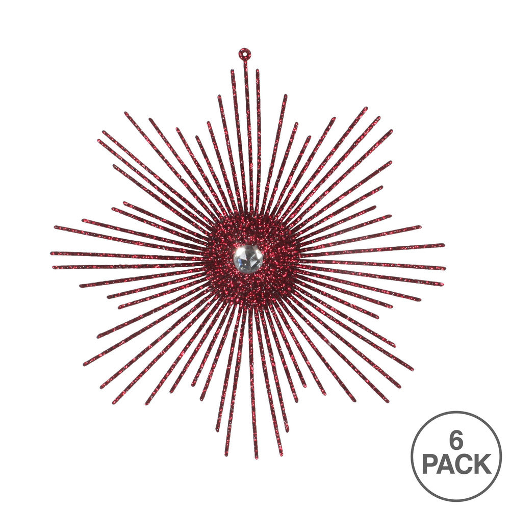 Vickerman 6.5" Burgundy Snowflake Burst Glitter Christmas Ornament 6 per Bag