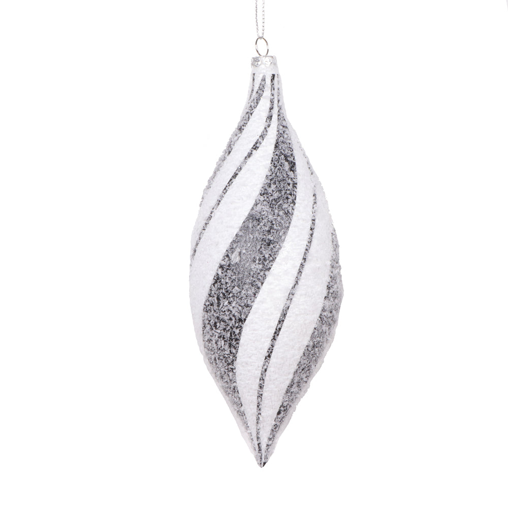 Vickerman 7" White Black Swirl Shuttle Ornament 4 per bag.