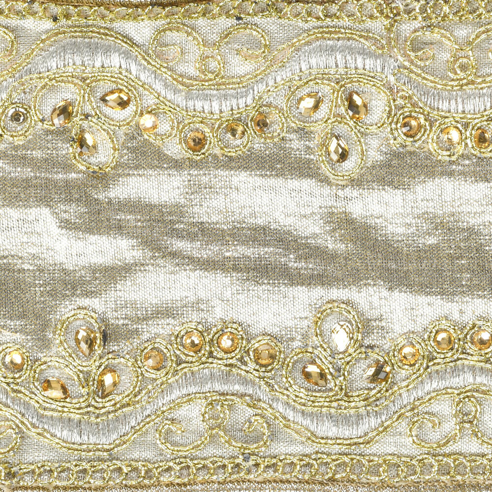 Vickerman 4" x 5 Yards Champagne with Gold Embroidery Two-Sided Wired Edge Christmas Ribbon.