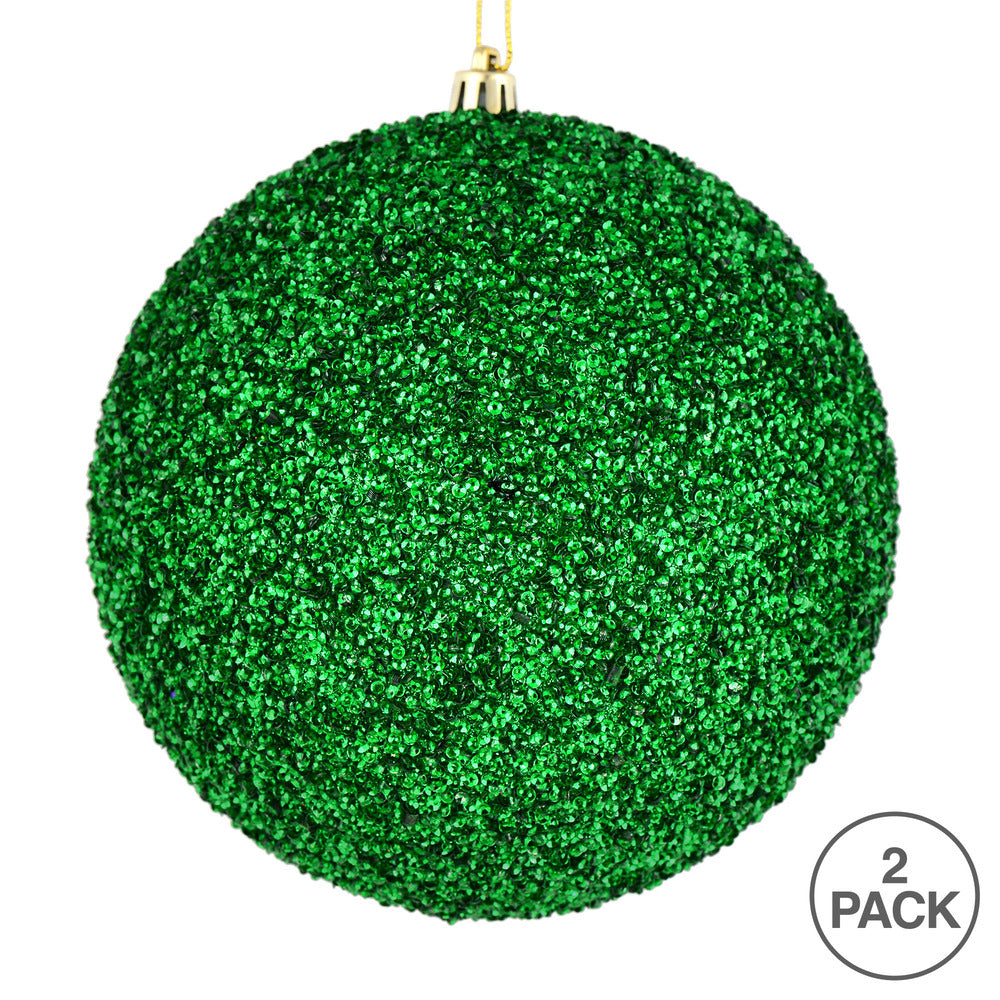 Vickerman 8" Green Beaded Ball Ornament 2 per Bag