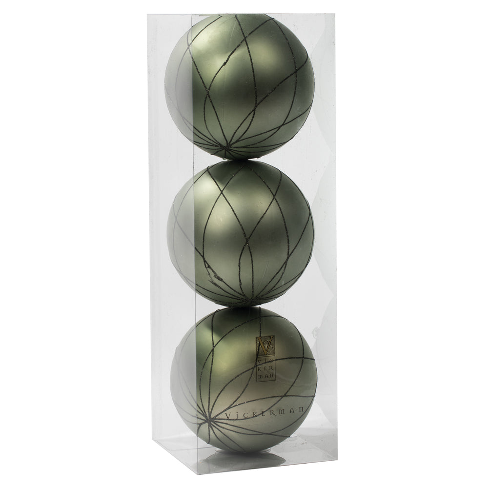 Vickerman 6" Moss Green Matte and Glitter Swirl Ball Ornament 3 per Box