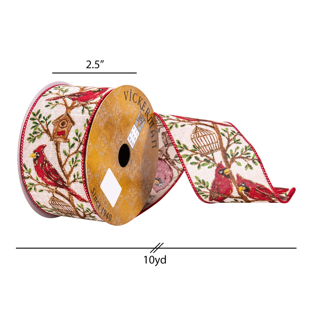 Vickerman 2.5" x 10 Yards Cream and Red Robins Cage Ribbon