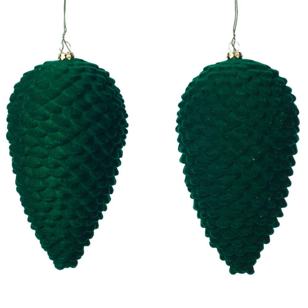 Vickerman 7" Moss Green Flocked Pinecone Christmas Ornament Pack of 2