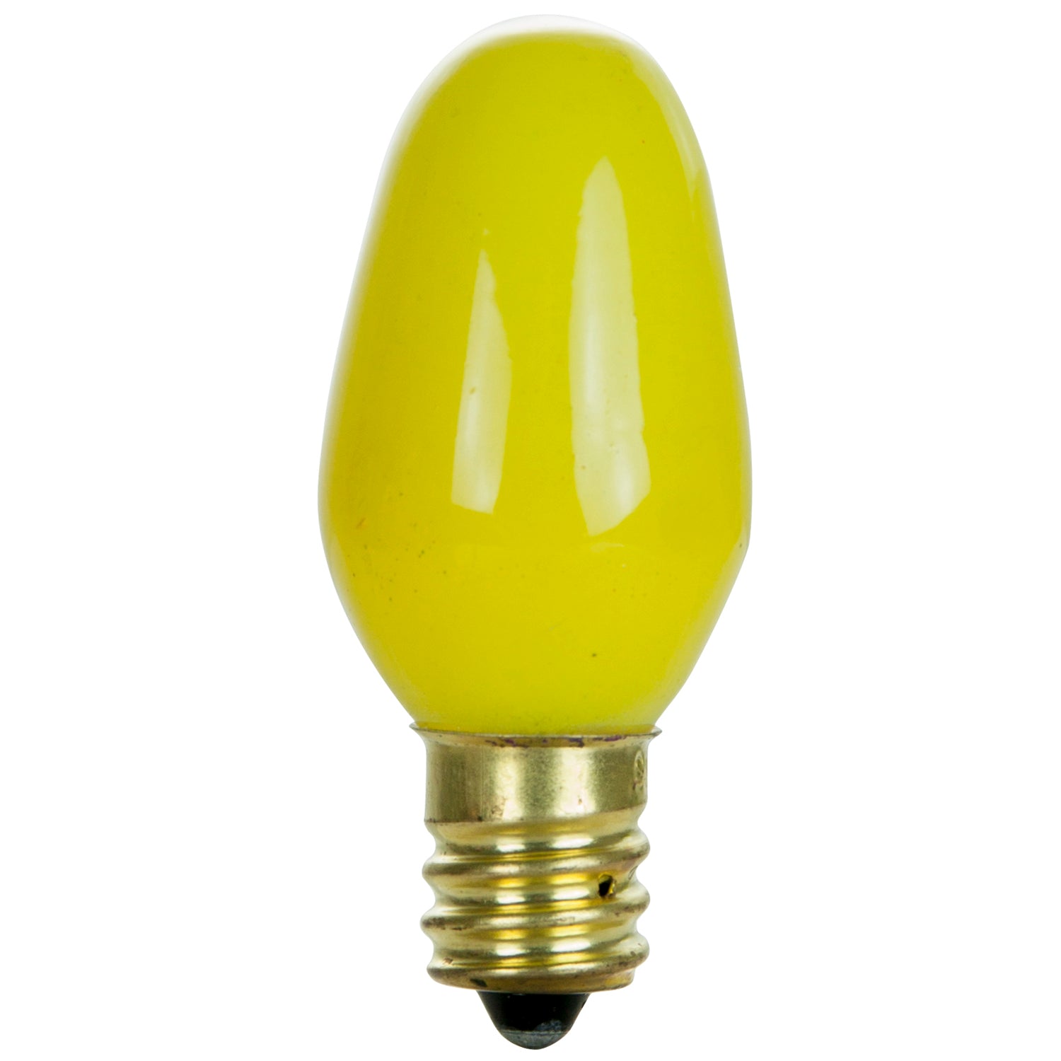 Sunlite 01061 7C7 Incandescent Bulb, 7 Watt, Candelabra E12 Base, C7 Small Night Light, Colored Bulb, Yellow, 12 Count