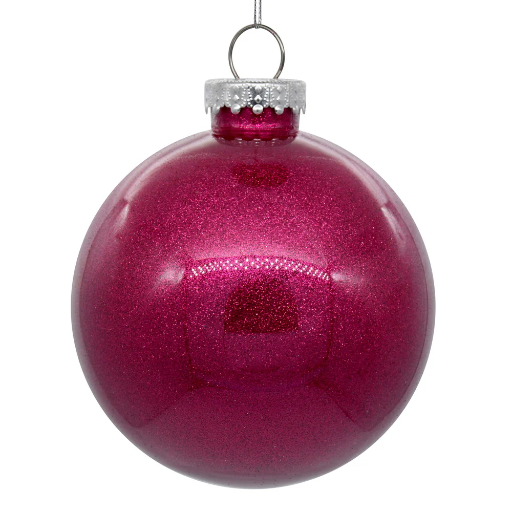 Vickerman 6" Clear Ball Christmas Ornament with Fuchsia Glitter Interior 4 Pieces per bag