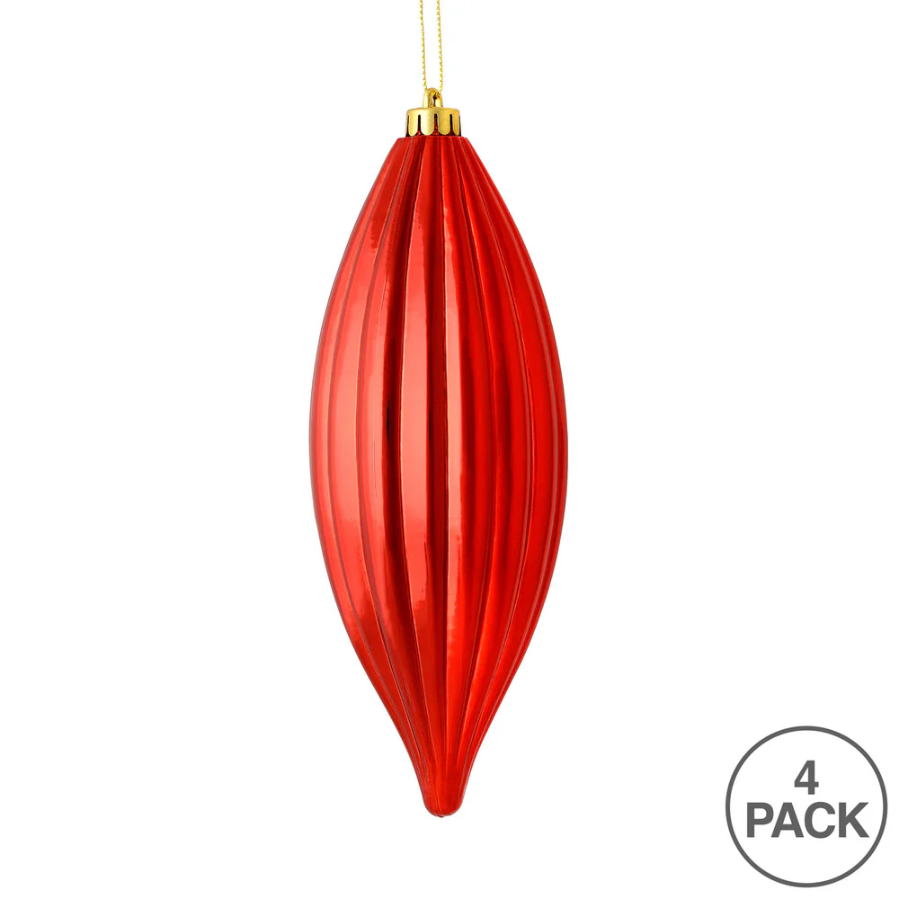 Vickerman 8" Red Shiny Line Finial Ornament Pack of 4