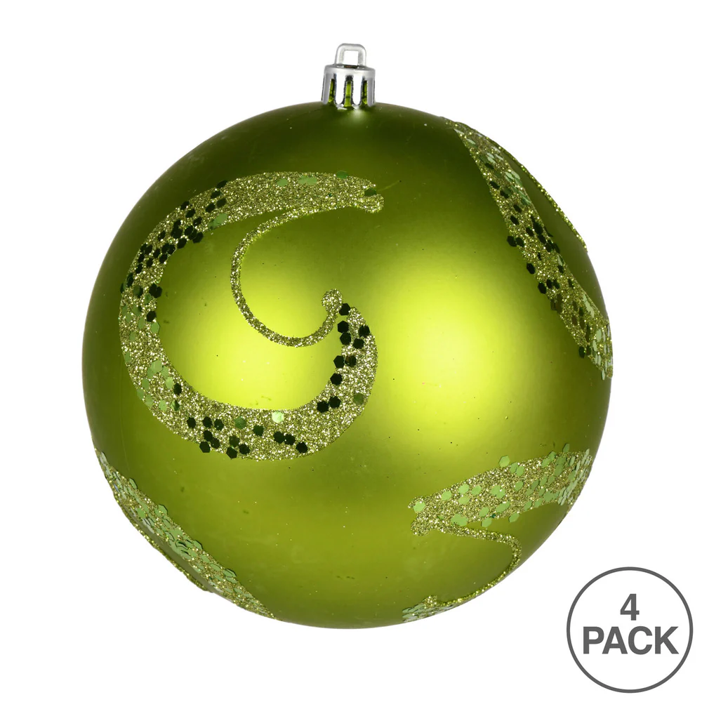 Vickerman 4.75" Lime Matte Sequin Swirl Ornament 4 per Bag