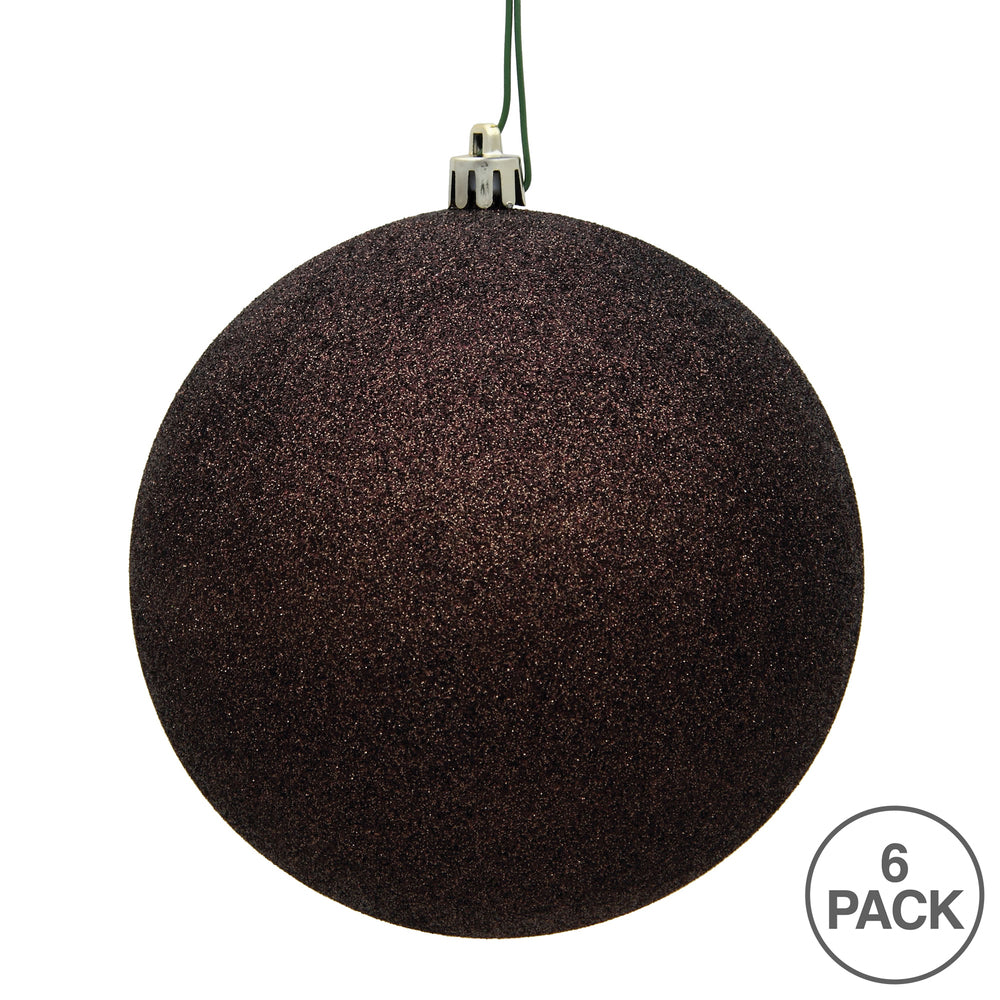 Vickerman 4" Chocolate Glitter Ball Ornament 6 per Bag