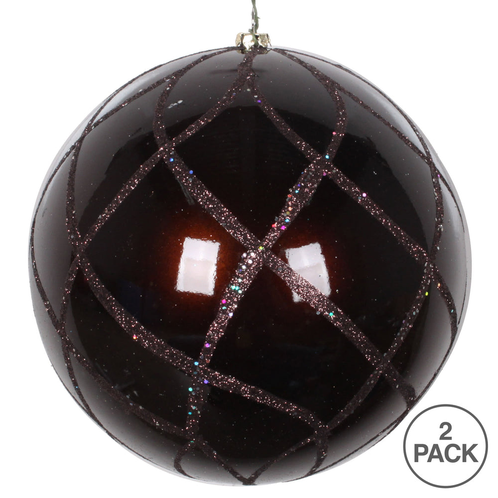 Vickerman 6" Chocolate Candy Finish Net Ball Ornament with Glitter Accents 2 per Bag