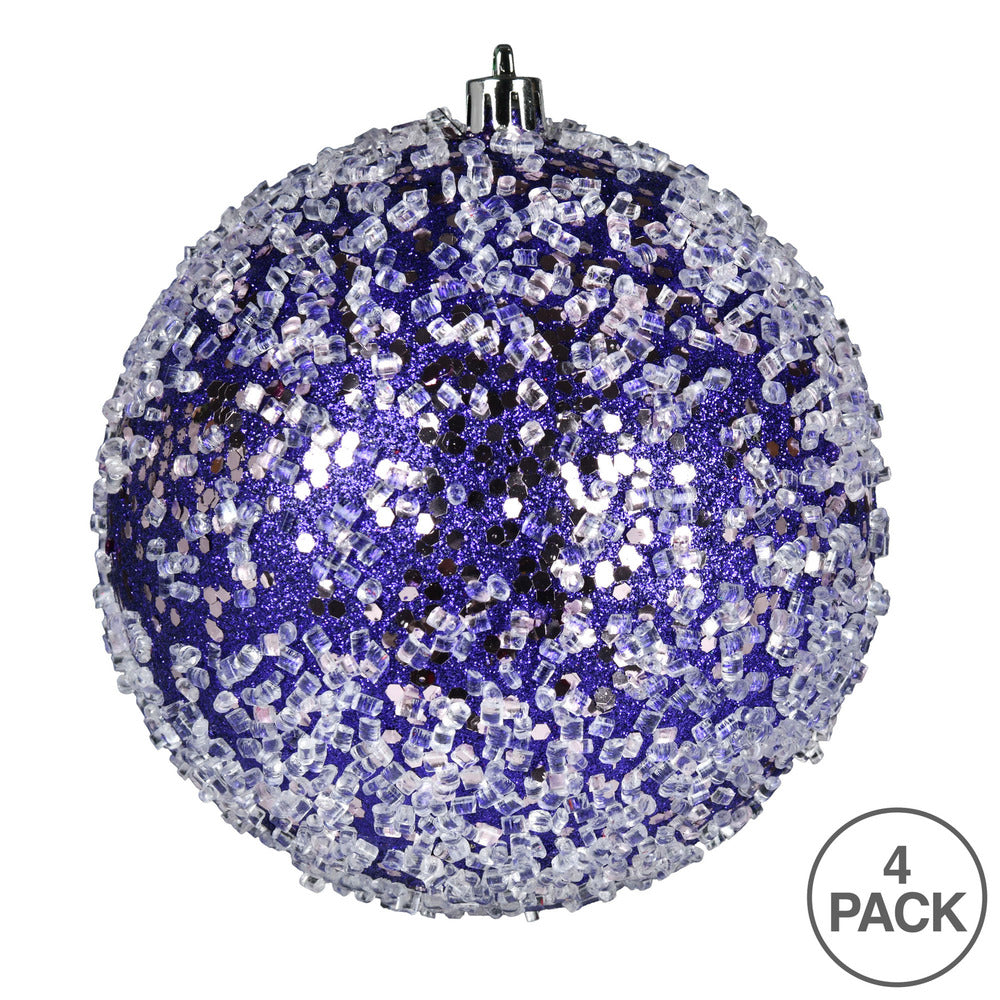 Vickerman 6" Purple Glitter Hail Ball Ornament 4 per Bag