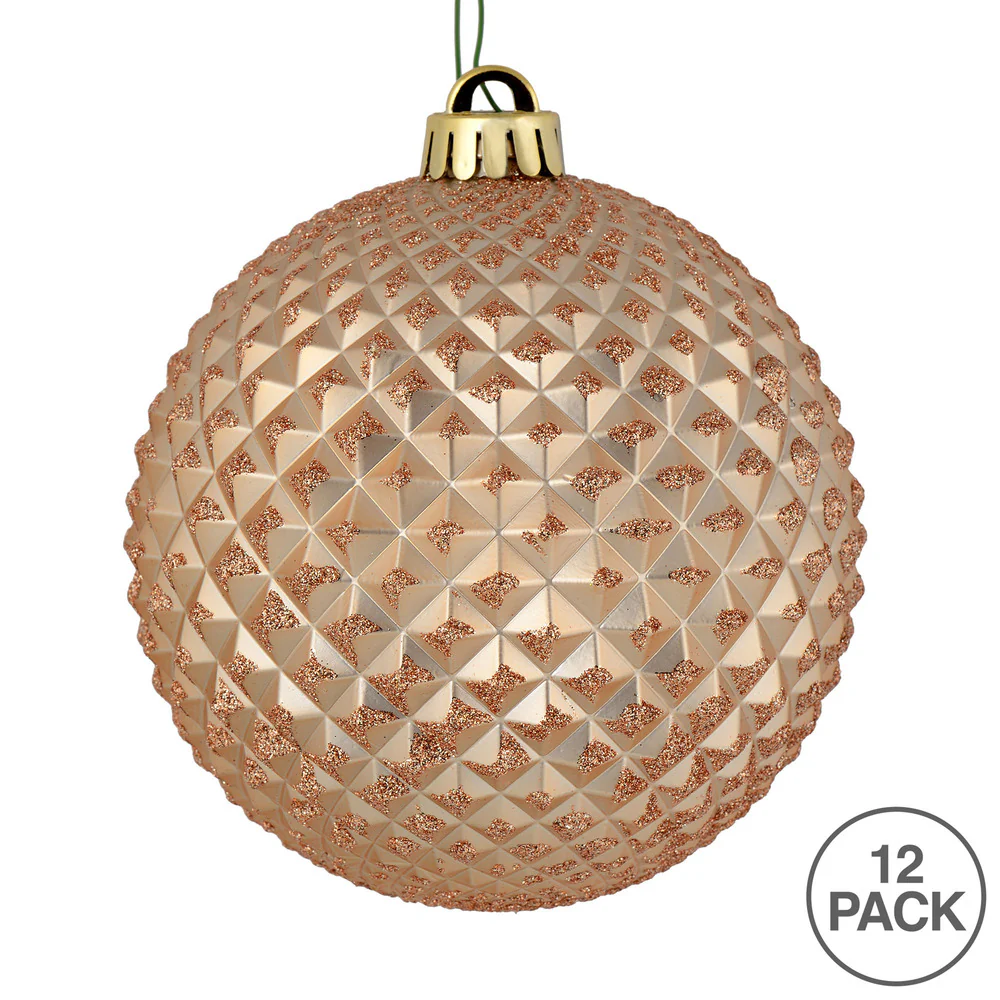 Vickerman 4" Rose Gold Glitter Ball Ornament 6 per Bag