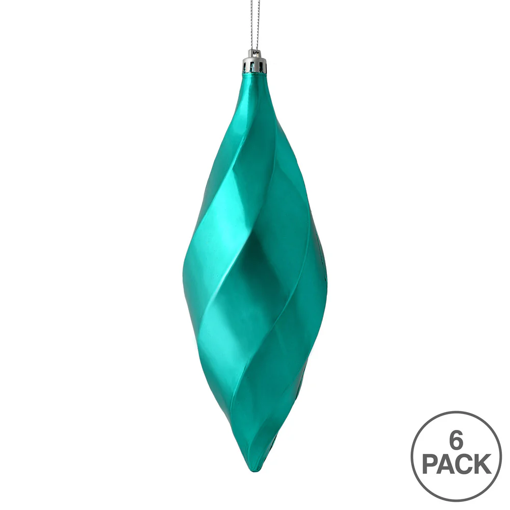 Vickerman 8" Teal Shiny Swirl Finial Ornament Pack of 6