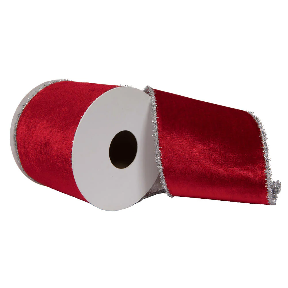 Vickerman 4" x 5 Yards Red Viscose Velvet Double Fused Ribbon.