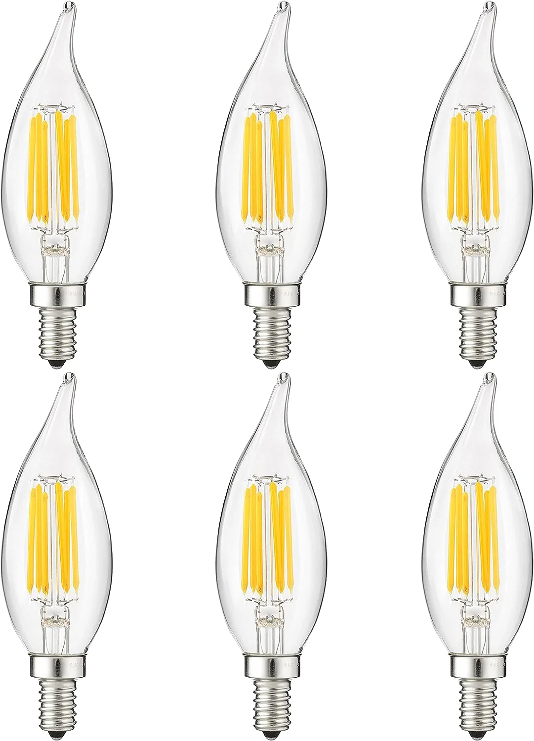 Sunlite 81107 LED Filament CA11 Flame Tip Chandelier Light Bulb, 5 Watts (60W Equivalent), 600 Lumens, Candelabra Base (E12), Edison style, Dimmable, ETL Listed, 4000K - Cool White - 6 Pack