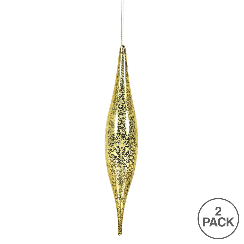 Vickerman 13" Gold Mercury Rain Drop Christmas Ornament Pack of 2