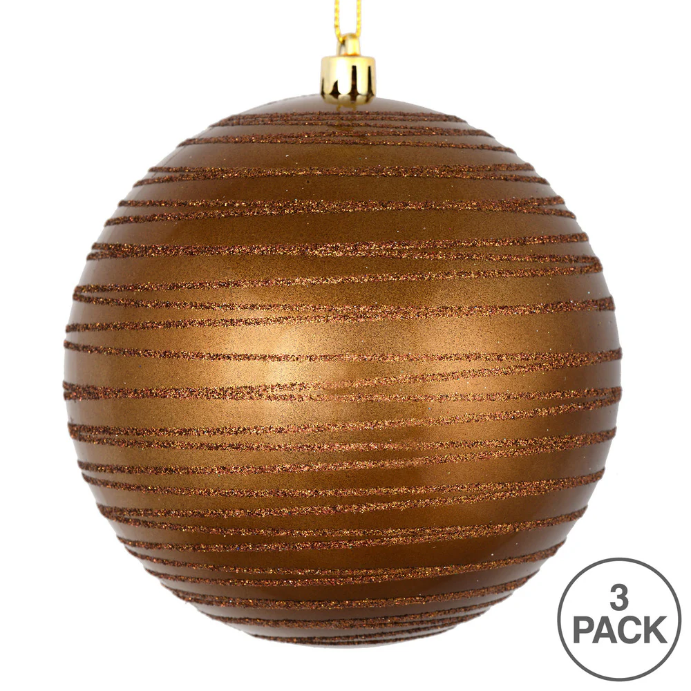 Vickerman 6" Mocha Candy Finish Ball Ornament with Glitter Lines 3 per Bag