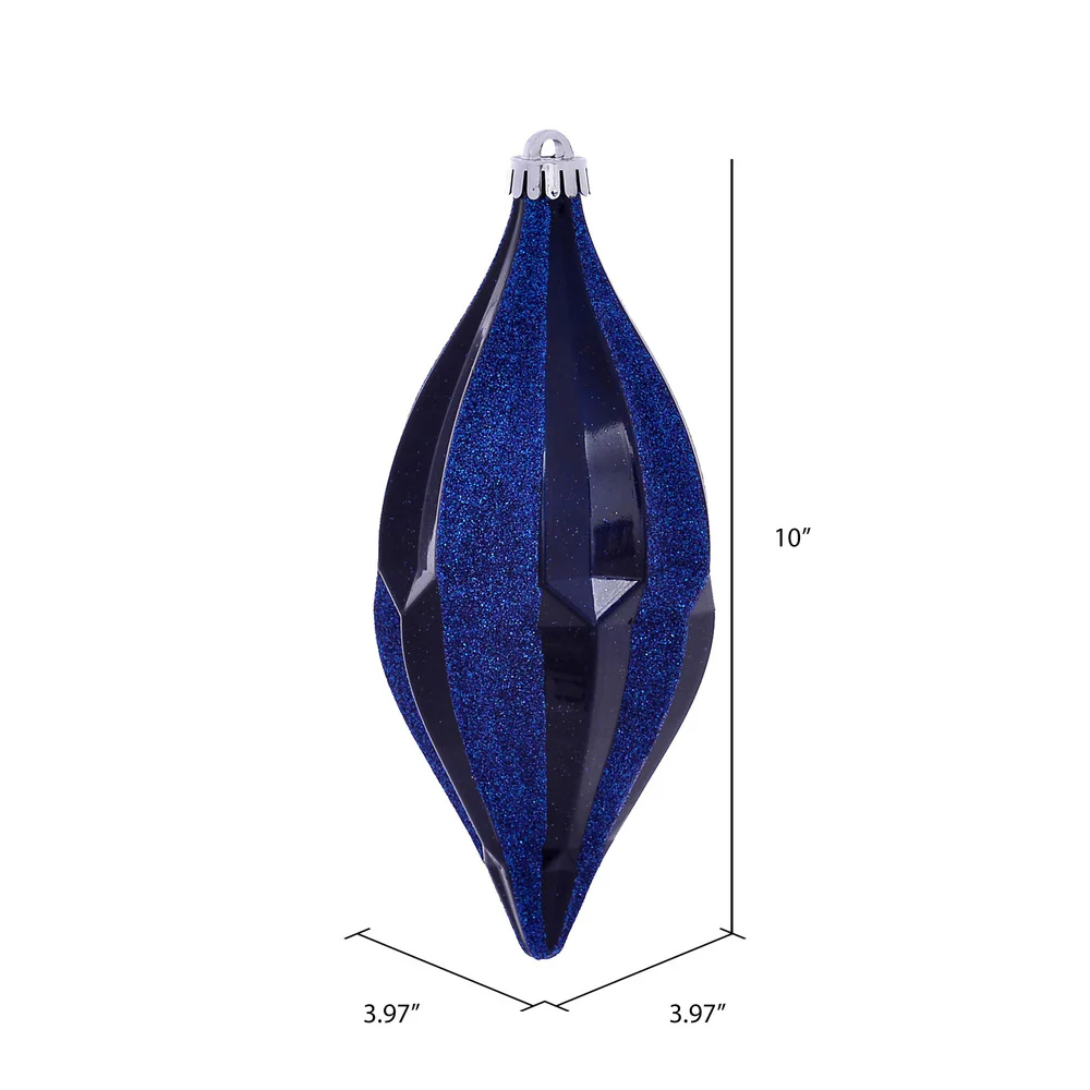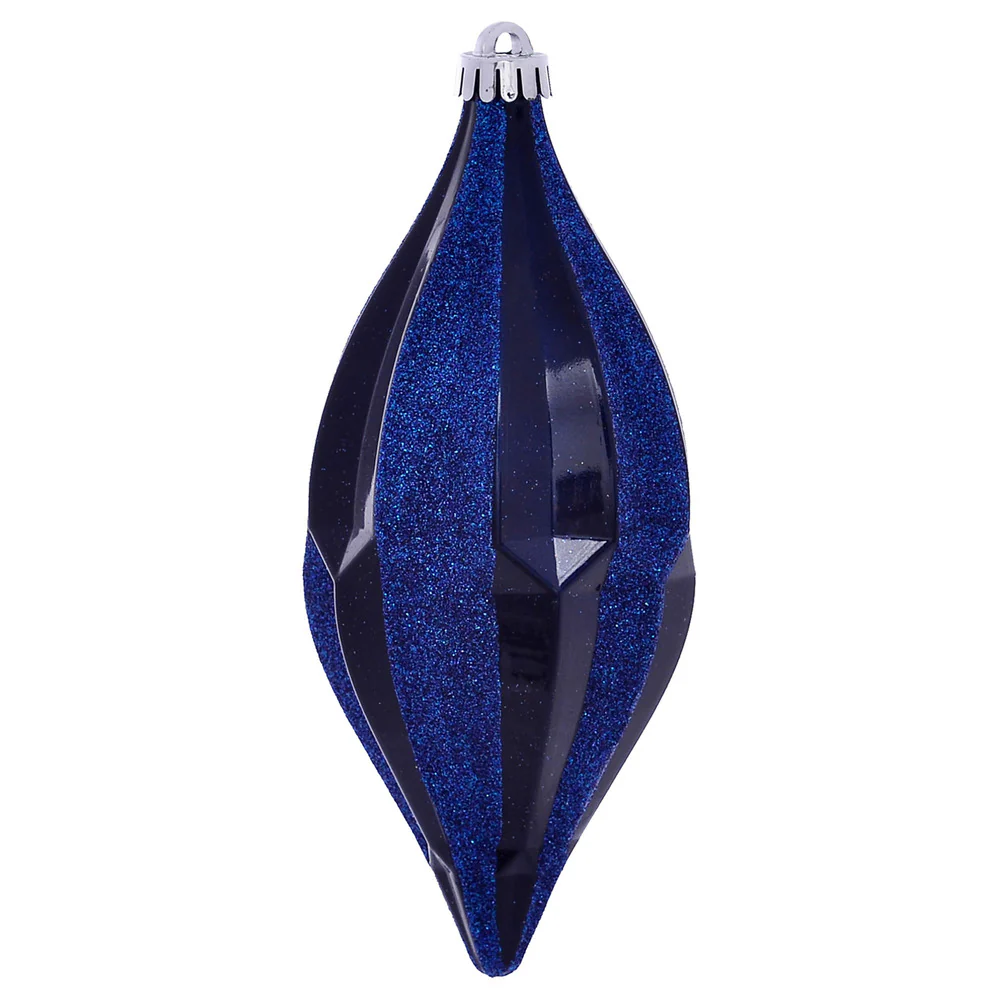 Vickerman 8" Sea Blue Shiny Line Finial 4/Bag. This ornament features a straight line design that will add texture to any holiday decorating project. Includes 4 pieces per bag.