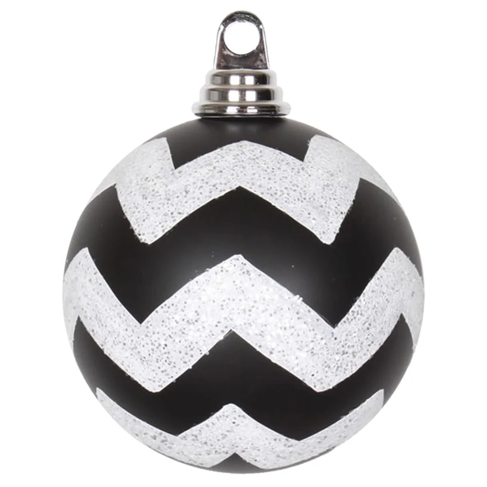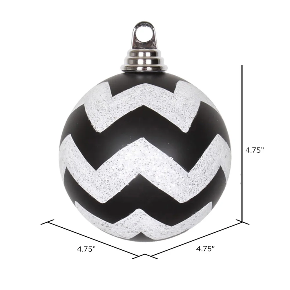 Vickerman 4.75" Black and White Matte Chevron Ball Christmas Ornament with Glitter Accents
